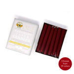 Standard-sized taper candles are our most popular type of candle. Sized at 7/8” diameter, standard tapers fit most conventional candlesticks. Choose from four sizes – 6” tapers, 8” taper candles, 10” tapers and 12” tall taper candles – in 39 colors. Tapered candles make great candles for hostess gifts, special tablescapes, or candles for events. Our unscented handcrafted taper candles have solid color throughout. These tapers are dripless when burned in normal indoor conditions.